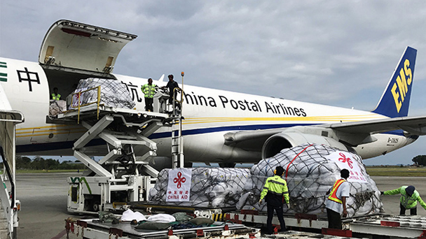 中國政府首批人道主義救災物資運抵印尼