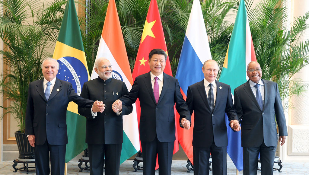 9月4日,金磚國家領導人非正式會晤在杭州舉行,國家主席習近平、印度總理莫迪、南非總統祖馬、巴西總統特梅爾、俄羅斯總統普京出席。