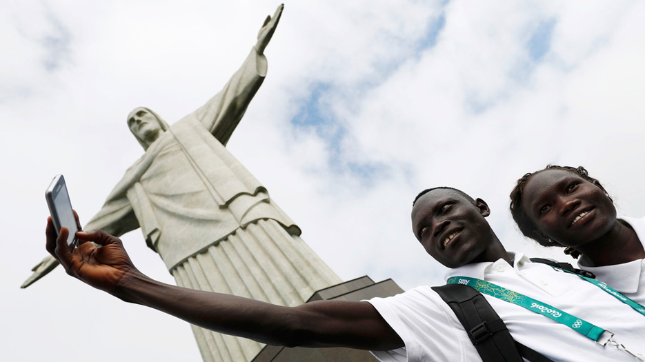 難民代表隊(duì)興致勃勃游里約 基督像受熱捧