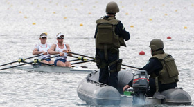 各國(guó)賽艇隊(duì)積極備戰(zhàn) 士兵在側(cè)確保安全