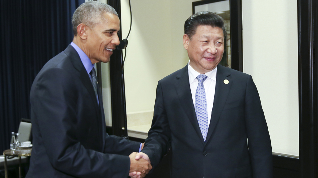 19日,國家主席習近平在利馬會見美國總統奧巴馬。兩國元首回顧總結3年多來中美關系發展經驗,一致同意確保中美關系繼續沿著正確軌道健康穩定向前發展。