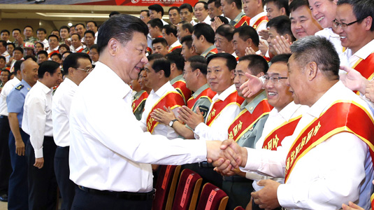 7月29日,黨和國(guó)家領(lǐng)導(dǎo)人習(xí)近平、李克強(qiáng)等在北京會(huì)見全國(guó)雙擁模范城(縣)命名暨雙擁模范單位和個(gè)人表彰大會(huì)代表。新華社記者 鞠鵬 攝