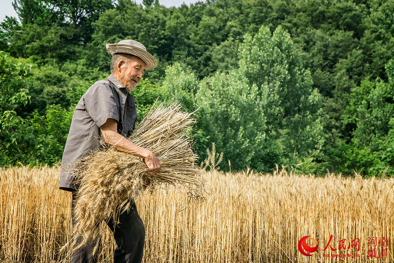 人民網鄭州6月5日電(宋芳鑫)俗話說:蠶老一時,麥熟一晌。麥收一定要搶時機,一旦誤了時機,收成就會大打折扣。6月1日,在河南省平頂山魯山縣葉坪村,92歲的高大爺正忙著收割小麥。雖然已經92歲高齡,但高大爺精神矍鑠,身板骨硬朗。割麥、碾場等農活樣樣精通,是村里農活上的“老把式”。