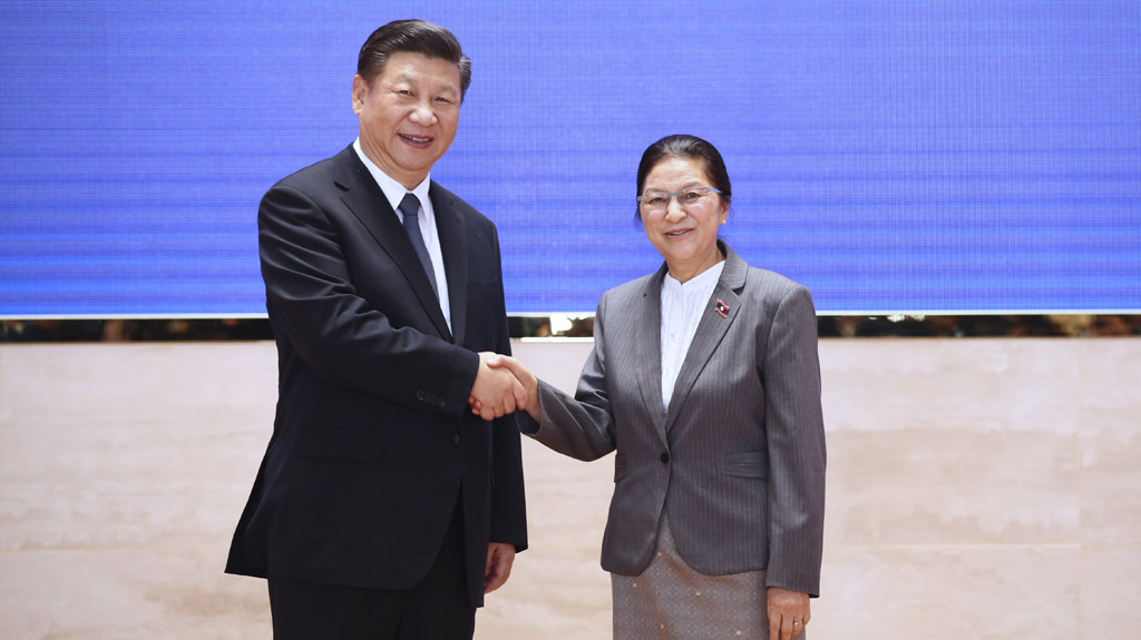 11月14日,中共中央總書記、國家主席習近平在萬象國家會議中心會見老撾國會主席巴妮。