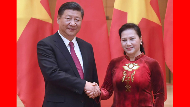 中共中央總書(shū)記、國(guó)家主席習(xí)近平12日在河內(nèi)會(huì)見(jiàn)越南國(guó)會(huì)主席阮氏金銀。