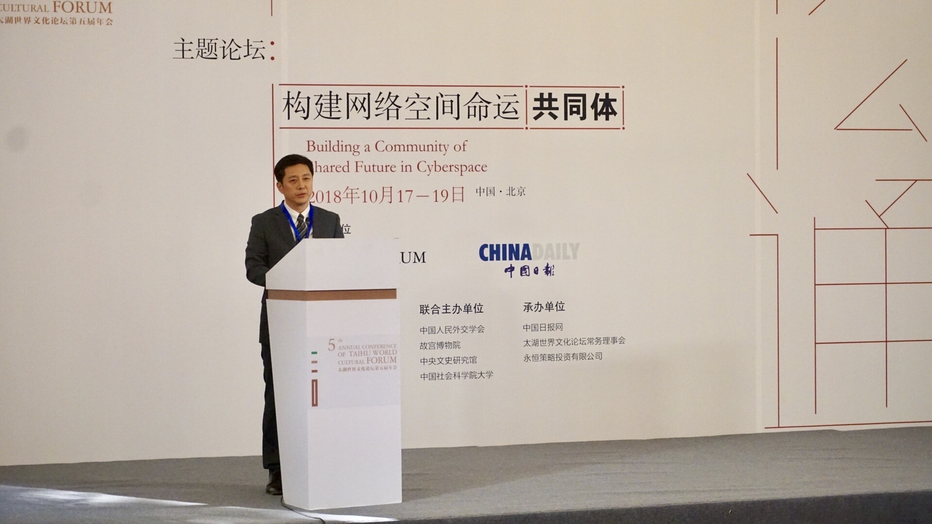 2018年10月19日,由太湖世界文化論壇、中國日報社主辦,中國日報網承辦的“太湖世界文化論壇”主題論壇“構建網絡空間命運共同體”在北京舉辦,揚州市人民政府副市長、前中國公共外交協會秘書長劉禹同發表題為《讓互聯網之光閃耀千年古城——構建網絡空間命運共同體的揚州實踐》的主題演講: