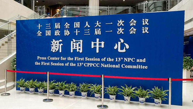 隨著全國(guó)兩會(huì)腳步的臨近,設(shè)在北京西長(zhǎng)安街北側(cè)梅地亞中心的兩會(huì)新聞中心27日正式“開(kāi)張”。郝勇/攝影 人民網(wǎng)北京2月28日電 隨著全國(guó)兩會(huì)腳步的臨近,設(shè)在北京西長(zhǎng)安街北側(cè)梅地亞中心的兩會(huì)新聞中心27日正式“開(kāi)張”。