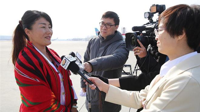 3月2日,出席十三屆全國(guó)人大一次會(huì)議的西藏代表團(tuán)乘坐飛機(jī)抵達(dá)北京。