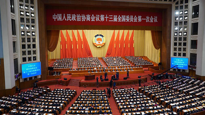 3月3日,中國(guó)人民政治協(xié)商會(huì)議第十三屆全國(guó)委員會(huì)第一次會(huì)議在北京人民大會(huì)堂開(kāi)幕。