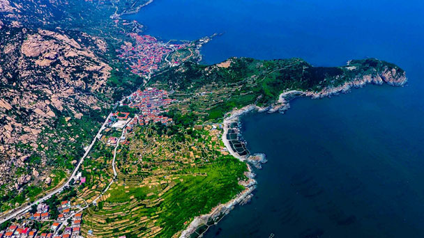 5月19日無人機拍攝的嶗山腳下的雕龍嘴村。山海相連,山光海色,是嶗山風光的特色,也成為青島市的一張靚麗城市名片。