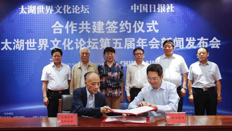 2018年8月28日,太湖世界文化論壇與中國日報(bào)社合作共建簽約儀式暨第五屆年會新聞發(fā)布會在北京舉行。