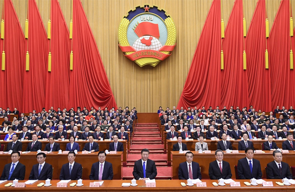 中國(guó)人民政治協(xié)商會(huì)議第十三屆全國(guó)委員會(huì)第一次會(huì)議在圓滿(mǎn)完成各項(xiàng)議程后,15日上午在人民大會(huì)堂閉幕。習(xí)近平、李克強(qiáng)、張德江、俞正聲、張高麗、栗戰(zhàn)書(shū)、王滬寧、趙樂(lè)際、韓正等在主席臺(tái)就座。