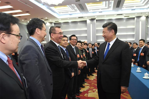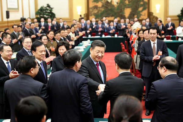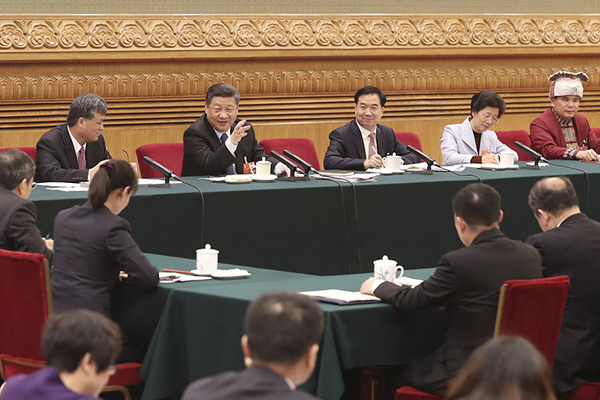 習(xí)近平3月4日下午看望了參加全國(guó)政協(xié)十三屆一次會(huì)議的民盟、致公黨、無(wú)黨派人士、僑聯(lián)界委員,并參加聯(lián)組會(huì),聽(tīng)取意見(jiàn)和建議。習(xí)近平強(qiáng)調(diào),中國(guó)特色社會(huì)主義進(jìn)入新時(shí)代,要求我們堅(jiān)定不移鞏固和發(fā)展中國(guó)共產(chǎn)黨領(lǐng)導(dǎo)的多黨合作和政治協(xié)商制度,發(fā)揮多黨合作獨(dú)特優(yōu)勢(shì),發(fā)展社會(huì)主義民主政治,為決勝全面建成小康社會(huì)而團(tuán)結(jié)奮斗。我國(guó)各民主黨派、無(wú)黨派人士要增強(qiáng)“四個(gè)自信”,增強(qiáng)政治定力,積極建言獻(xiàn)策,廣泛凝心聚力,為決勝全面建成小康社會(huì)、奪取新時(shí)代中國(guó)特色社會(huì)主義偉大勝利作出新的更大貢獻(xiàn)。