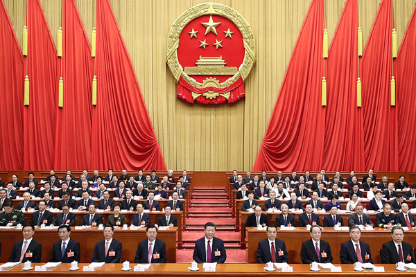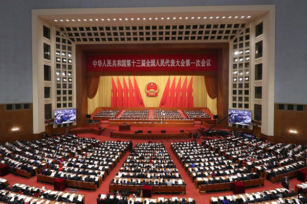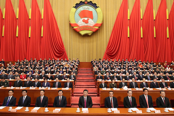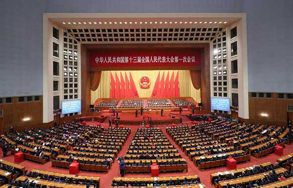 3月5日,第十三屆全國(guó)人民代表大會(huì)第一次會(huì)議在北京人民大會(huì)堂開(kāi)幕。習(xí)近平、李克強(qiáng)、張德江、俞正聲、張高麗、汪洋、王滬寧、趙樂(lè)際、韓正和大會(huì)主席團(tuán)成員在主席臺(tái)就座。