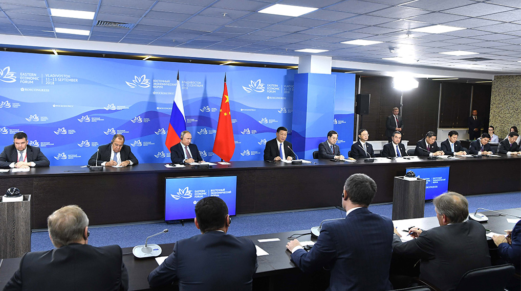 應俄羅斯總統普京邀請,9月11日至12日,國家主席習近平赴俄羅斯符拉迪沃斯托克出席第四屆東方經濟論壇,據《新聞聯播》播報,出訪期間,習近平與普京共同出席中俄經貿、人文、地方交往等活動。