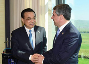 國務(wù)院總理李克強16日上午在烏蘭巴托會見保加利亞總統(tǒng)普列夫內(nèi)利埃夫。