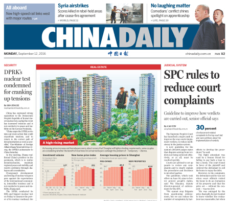 9月21日中國日報推薦:朝鮮半島無核化需要各方努力