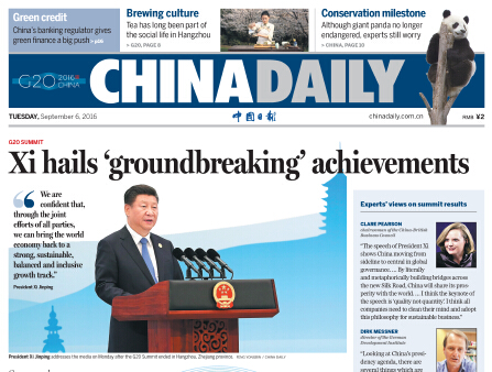 9月5日中國日報推薦:杭州見證新的世界經濟秩序