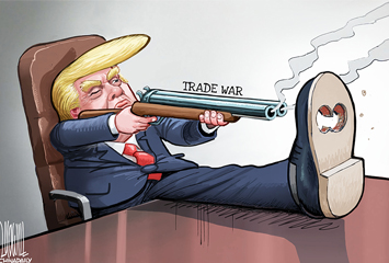 美國總統特朗普帶領美國向中國、歐盟等發起貿易戰實為搬起石頭砸自己的腳。