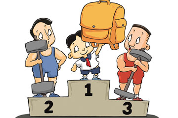 學生課業過重練就“大力士”。