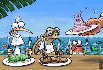 人類留下大量海洋垃圾使海洋生物的生存受到極大威脅。