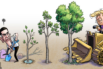 美國新任總統特朗普將全面否定前任總統奧巴馬的政策。