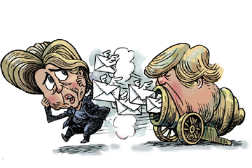 借助希拉里“郵件門”丑聞,特朗普炮轟對手。