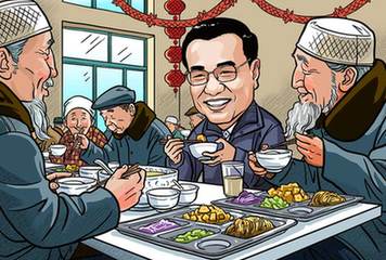 李克強2月1日來到寧夏固原市原州區中心敬老院,與老人們在一起過小年。總理與坐在身旁的回族老人馬安倉邊吃邊拉家常,稱贊老人“紅光滿面”,還給他盛了一碗熱氣騰騰的餃子。隨后,李克強起身舉起手中的熱飲,祝愿各位老人身體健康,幸福長壽。