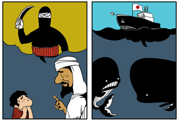 在小鯨魚眼里,日本的捕鯨船跟恐怖分子也沒什么區別吧!