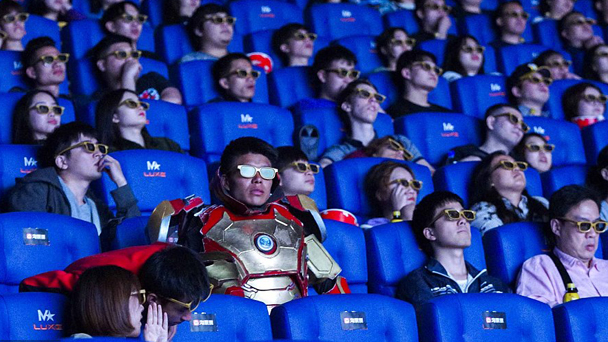 上?!颁摻z”穿戴鋼鐵俠全套盔甲看電影 不舍唐尼為偶像集簽名