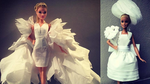 男性網友為芭比做嫁衣 這些婚紗都是衛生紙做的!