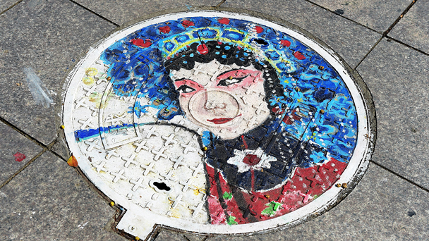 成都:川大學生井蓋上賽彩繪 熊貓川劇都畫上去了