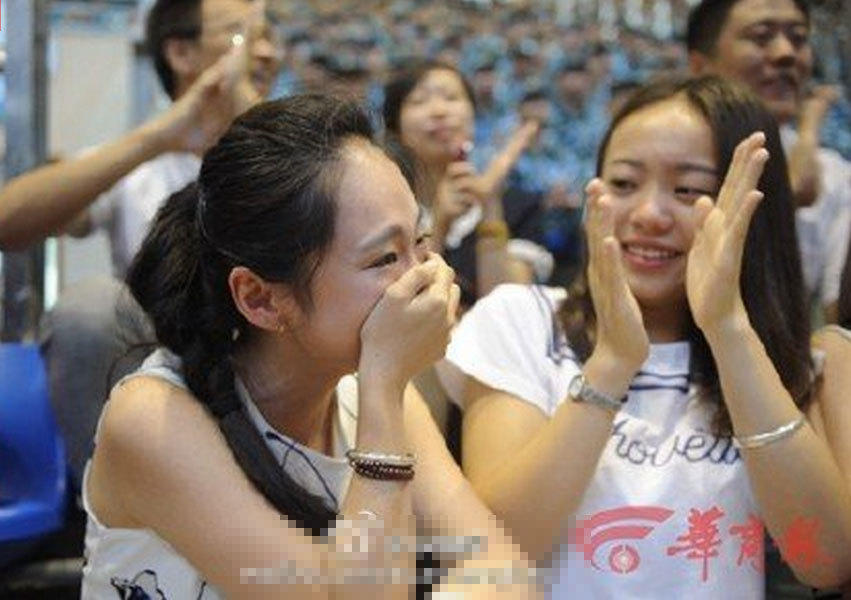 西北工業(yè)大學(xué)2010級(jí)電子信息學(xué)院探測(cè)制導(dǎo)畢業(yè)生蘇敬參加了閱兵方隊(duì),蘇敬的女友觀看閱兵式流下激動(dòng)的淚水。西北工業(yè)大學(xué)長(zhǎng)安校區(qū)體育館內(nèi),5000余師生觀看閱兵式。西北工業(yè)大學(xué)2010級(jí)電子信息學(xué)院探測(cè)制導(dǎo)畢業(yè)生蘇敬參加了閱兵方隊(duì),蘇敬的女友觀看閱兵式流下激動(dòng)的淚水。