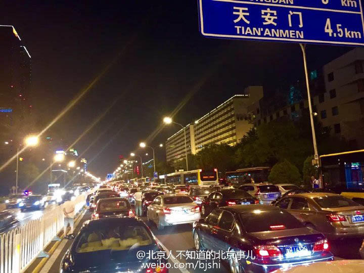 9月3日晚,北京長(zhǎng)安街及其東延長(zhǎng)線發(fā)生嚴(yán)重?fù)矶?。圖自@北京人不知道的北京事兒 9月3日晚,北京長(zhǎng)安街及其東延長(zhǎng)線發(fā)生嚴(yán)重?fù)矶隆?月3日晚,北京長(zhǎng)安街及其東延長(zhǎng)線發(fā)生嚴(yán)重?fù)矶隆.?dāng)日北京僅允許單號(hào)車(chē)輛出行。