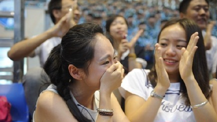 西北工業(yè)大學(xué)2010級電子信息學(xué)院探測制導(dǎo)畢業(yè)生蘇敬參加了閱兵方隊,蘇敬的女友觀看閱兵式流下激動的淚水。其女友稱,他們已半年沒見面,蘇敬更是一年未回家,但一切都值得。女生流淚。5000余師生觀看閱兵式。