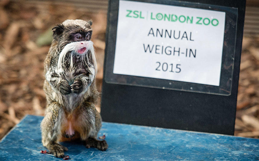 倫敦動物園是世界上最古老的動物園之一。一名飼養員正在為一只重達160千克的巨型陸龜“測量身高”。貓頭鷹在護養人員的協助下接受稱重。飼養員正在為一只獨角仙稱重。一只巨型竹節蟲在護養員的手臂上爬行。