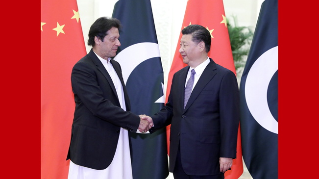 11月2日,國(guó)家主席習(xí)近平在北京人民大會(huì)堂會(huì)見巴基斯坦總理伊姆蘭·汗。新華社記者 丁林 攝