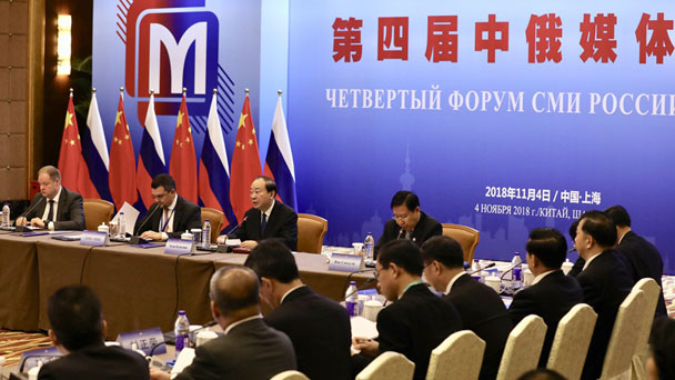 2018年11月4日,第四屆中俄媒體論壇在上海舉行。中共中央政治局委員、中宣部部長(zhǎng)黃坤明和俄羅斯聯(lián)邦政府副總理阿基莫夫出席開幕式并作主旨演講。