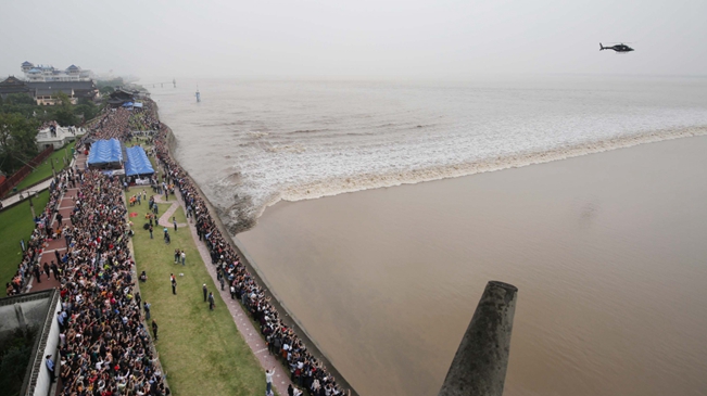 10月6日,農(nóng)歷八月十七是觀賞錢塘大潮的日子。當(dāng)天中午12點,浙江海寧鹽官觀潮勝地擠滿了觀賞大潮的人潮。