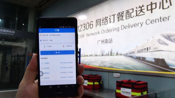 7月17日,鐵路部門工作人員在演示使用手機(jī)訂餐。新華社記者 梁旭 攝 7月17日,在廣州南站,商家將外賣送至網(wǎng)絡(luò)訂餐配送中心,由工作人員統(tǒng)一送上列車。新華社記者 梁旭 攝 7月17日,在廣州南站網(wǎng)絡(luò)訂餐配送中心,工作人員準(zhǔn)備將外賣送上列車。