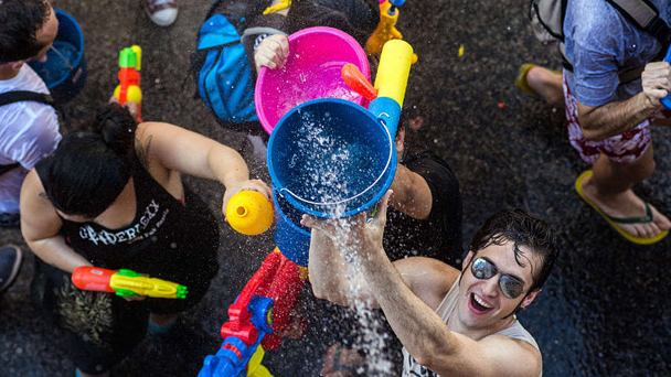 當(dāng)?shù)貢r(shí)間7月16日,成千上萬的民眾來到西班牙馬德里市的巴列卡斯區(qū),參加一年一度的“潑水”狂歡節(jié)。