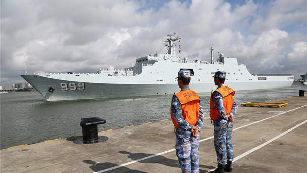 當日,中國人民解放軍駐吉布提保障基地成立暨部隊出征儀式在廣東湛江某軍港碼頭舉行。當日,中國人民解放軍駐吉布提保障基地成立暨部隊出征儀式在廣東湛江某軍港碼頭舉行。