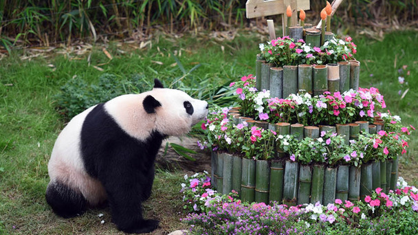 旅韓中國大熊貓“愛寶”和“樂寶”將分別在7月13日和28日迎來自己的4歲和5歲生日,韓國京畿道龍仁市的愛寶樂園12日專門為它們舉辦了慶生會。