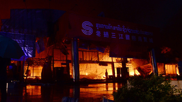 老撾首都萬象中國商戶聚集的三江國際商貿城7月14日傍晚發生嚴重火災,造成嚴重經濟損失。