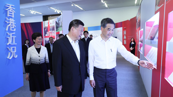 6月26日,中共中央總書記、國家主席、中央軍委主席習(xí)近平在國家博物館參觀香港回歸祖國20周年成就展。