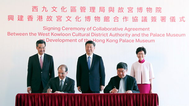 國家主席習(xí)近平29日下午在香港西九文化區(qū)出席《興建香港故宮文化博物館合作協(xié)議》簽署儀式。
