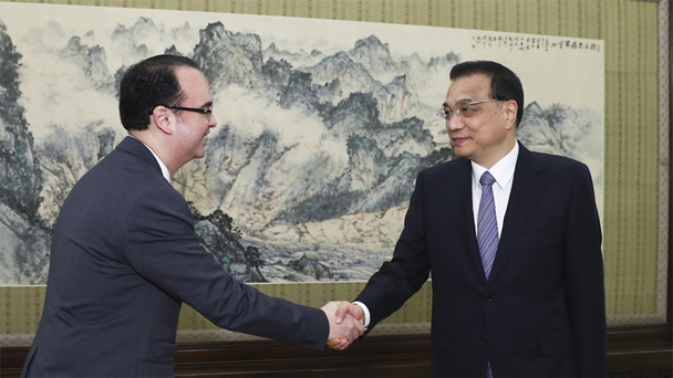 6月30日,國務(wù)院總理李克強(qiáng)在北京中南海紫光閣會見來華進(jìn)行正式訪問的菲律賓外長卡耶塔諾。新華社記者 謝環(huán)馳 攝 6月30日,國務(wù)院總理李克強(qiáng)在北京中南海紫光閣會見來華進(jìn)行正式訪問的菲律賓外長卡耶塔諾。