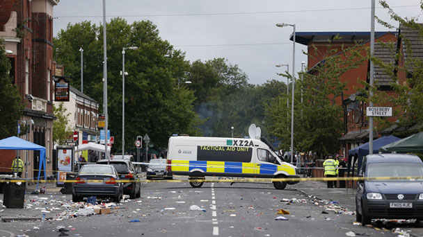 8月12日,在英國曼徹斯特,警方在槍擊現(xiàn)場拉起警戒線。新華社發(fā)(埃德·賽克斯攝) 8月12日,在英國曼徹斯特,警方抵達(dá)槍擊現(xiàn)場。新華社發(fā)(埃德·賽克斯攝) 8月12日,在英國曼徹斯特,警方抵達(dá)槍擊現(xiàn)場。