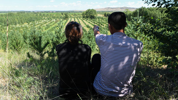走在林子里,看著滿眼綠色,馬云平和妻子王長榮感到十分幸福與驕傲。起初,他們也不敢想,這一片沙地會(huì)變成綠地。