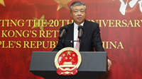 當地時間6月26日晚,中國駐英大使館舉行隆重招待會,與200多名中外嘉賓共同慶祝香港回歸20周年。劉曉明大使發表講話,表示香港自回歸以來,日益成為中英關系的重要橋梁和紐帶。